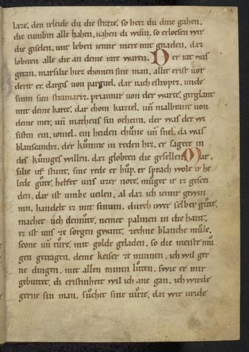 | Keywords: Pfaffe Konrad - Rolandslied - cod. pal. germ. 112 - 017.jpg  Pfaffe Konrad - Rolandslied - cod pal germ 112 - jpg 016 018 Rolandslied des Pfaffen Konrad à bersetzung bzw Bearbeitung der altfranzösischen Chanson de Roland um 1100 Blatt 8r Pfaffe Konrad Rolandslied Pergament 123 Blatt 21x15 cm Regensburg/Hessen-Thüringen Ende 12 Jahrhundert Cod pal germ 112 Universitätsbibliothek Heidelberg http //diglit ub uni-heidelberg de/diglit/cpg112 century 12 Pfaffe Konrad PD-old Rolandslied Cod Pal germ 112 |
