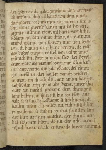 Keywords: Pfaffe Konrad - Rolandslied - cod. pal. germ. 112 - 175.jpg Pfaffe Konrad - Rolandslied - cod pal germ 112 - jpg 174 176 Rolandslied des Pfaffen Konrad à bersetzung bzw Bearbeitung der altfranzösischen Chanson de Roland um 1100 Blatt 87r Pfaffe Konrad Rolandslied Pergament 123 Blatt 21x15 cm Regensburg/Hessen-Thüringen Ende 12 Jahrhundert Cod pal germ 112 Universitätsbibliothek Heidelberg http //diglit ub uni-heidelberg de/diglit/cpg112 century 12 Pfaffe Konrad PD-old Rolandslied Cod Pal germ 112 |