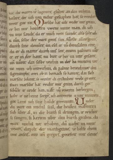 | Keywords: Pfaffe Konrad - Rolandslied - cod. pal. germ. 112 - 023.jpg Pfaffe Konrad - Rolandslied - cod pal germ 112 - jpg 022 024 Rolandslied des Pfaffen Konrad à bersetzung bzw Bearbeitung der altfranzösischen Chanson de Roland um 1100 Blatt 11r Pfaffe Konrad Rolandslied Pergament 123 Blatt 21x15 cm Regensburg/Hessen-Thüringen Ende 12 Jahrhundert Cod pal germ 112 Universitätsbibliothek Heidelberg http //diglit ub uni-heidelberg de/diglit/cpg112 century 12 Pfaffe Konrad PD-old Rolandslied Cod Pal germ 112 |
