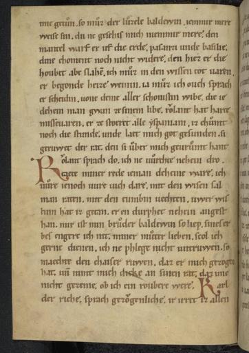 | Keywords: Pfaffe Konrad - Rolandslied - cod. pal. germ. 112 - 040.jpg Pfaffe Konrad - Rolandslied - cod pal germ 112 - jpg 039 041 Rolandslied des Pfaffen Konrad à bersetzung bzw Bearbeitung der altfranzösischen Chanson de Roland um 1100 Blatt 19v Pfaffe Konrad Rolandslied Pergament 123 Blatt 21x15 cm Regensburg/Hessen-Thüringen Ende 12 Jahrhundert Cod pal germ 112 Universitätsbibliothek Heidelberg http //diglit ub uni-heidelberg de/diglit/cpg112 century 12 Pfaffe Konrad PD-old Rolandslied Cod Pal germ 112 |