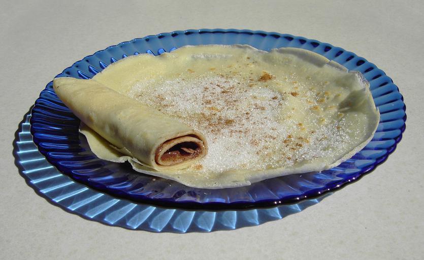 Keywords: Pfannkuchen mit Zucker.jpg Two pancakes one with sugar and cinnamon the other with Nutella zwei Pfannkuchen einer mit Zucker und Zimt der andere gerollt mit Nutella Két palacsinta az egyik cukros-fahéjas a másik nutellás own 2006-07-28 Jan Homann Pancakes of Germany Nutella Crêpes Cinnamon spice Food with visible granulated sugar Rolled pancakes Blue plates Plates with food |
