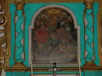 | Keywords: Pfettisheim chTrinité 07.JPG  Alsace Bas-Rhin Pfettisheim Chapelle de la Trinité Autel-retable XVIIe avec tableau Trinité own 2012 Ralph Hammann Cc-zero 48 47 24 437 N 7 39 9 365 E alt -196 5_source exif_heading 77 5 IM67009889 IM67009890 Artwork / Œuvre d'art / Kunstwerk Artist Dans les nuées où trônent Dieu le Père et le Christ figurent de nombreux angelots Sur le bas de la toile sont représentées les collines du Kochersberg XVIIe siècle oil canvas cm Chapelle de la Trinité Pfettisheim IM67009890 object history other versions Ralph Hammann PD-old accession number Chapelle de la Trinité Pfettisheim Photographs of Pfettisheim by Ralph Hammann Taken with Sony DSC-HX5V Altars in Bas-Rhin Church paintings in Bas-Rhin Paintings of the Holy Trinity 17th-century altars in Alsace 17th-century church paintings in Alsace |