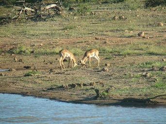 Keywords: PhalaborwaImpala2.jpg Two Impala Aepyceros melampus rams locking horns Taken in the Kruger National Park in South Africa Own 2007-06-06 Renier Maritz Aepyceros melampus of Kruger National Park