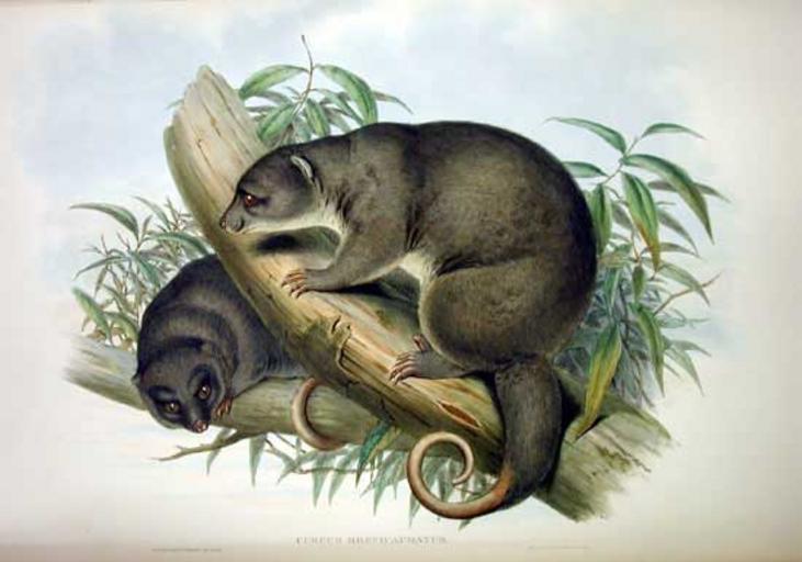 Keywords: Phalanger maculatus Gould.jpg Phalanger maculatus Syn Spilocuscus maculatus Mammals of Australia Vol I Plate 21 <br> http //www museum vic gov au/bioinformatics/mammals/images/Cus_brev htm 1863 Creator John Gould PD-Australia PD-old-100 Spilocuscus maculatus The Mammals of Australia John Gould Prehensile tails |