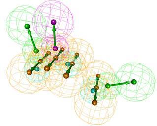Keywords: PharmacophoreModel example.svg en An example of a pharmacophore model own Dcirovic 2011-04-27 Cc-zero Pharmacophores