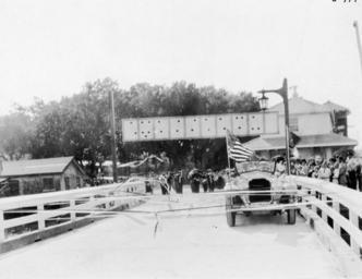Keywords: wilmington (n.c.) wilmingtonnc wrightsville beach (n.c.) wrightsvillebeachnc parades street scene streetscene blackandwhite monochrome snow black and white Dedication ceremony for the Wilmington-Wrightsville Beach Causeway June 1926. Ribbons are seen tied across the bridge with a decorated car just behind the ribbons. A marching band and a crowd are seen in the background. Wilmington, New Hanover County, NC c. 1926 From Carolina Power and Light (CP&L) Photograph Collection (PhC.68), North Carolina State Archives. Dedication ceremony for the Wilmington-Wrightsville Beach Causeway June 1926. Ribbons are seen tied across the bridge with a decorated car just behind the ribbons. A marching band and a crowd are seen in the background. Wilmington, New Hanover County, NC c. 1926 From Carolina Power and Light (CP&L) Photograph Collection (PhC.68), North Carolina State Archives. |