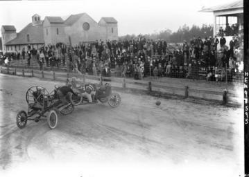 Keywords: blackandwhite monochrome outdoor snow black and white One car rides up on another in a heated match of auto polo. The two cars are seen tangled while the men struggle to hit the ball. c.1920’s From the Pryor Emerson Humphrey Photograph Collection, PhC.180, State Archives of North Carolina, Raleigh, NC. One car rides up on another in a heated match of auto polo. The two cars are seen tangled while the men struggle to hit the ball. c.1920’s From the Pryor Emerson Humphrey Photograph Collection, PhC.180, State Archives of North Carolina, Raleigh, NC. |