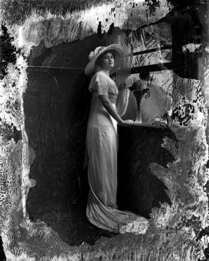 | Keywords: blackandwhite monochrome surreal black and white Full-length portrait of unidentified woman in gown (broken plate flat box). No date; estimated 1910 (11"x14" glass plate negative). From the J. C. Knowles Photograph Collection, State Archives of North Carolina, Raleigh, NC. Full-length portrait of unidentified woman in gown (broken plate flat box). No date; estimated 1910 (11"x14" glass plate negative). From the J. C. Knowles Photograph Collection, State Archives of North Carolina, Raleigh, NC. |