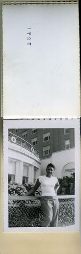 | Keywords: african americans africanamericans atlantic city (n.j.) atlanticcitynj shelburne hotel shelburnehotel battle, james battlejames military us army usarmy photo border Photograph bound in the larger of two small souvenir albums printed by the Raines & Cox Studio, Wilson, NC. These photographs were sent to the studio to be printed by a James Battle, likely from Wilson, and the photos depict an unidentified African American woman and various scenes in Atlantic City, NJ. Based on the scant information available in these albums and on the envelope in which they were originally housed, it appears that James Battle was probably a soldier in the US Army and the pictures in both albums were probably shot by him in the mid to late 1940s. From PhC.196 Raines & Cox Studio Photo Collection, State Archives of North Carolina, Raleigh, NC. Photograph bound in the larger of two small souvenir albums printed by the Raines & Cox Studio, Wilson, NC. These photographs were sent to the studio to be printed by a James Battle, likely from Wilson, and the photos depict an unidentified African American woman and various scenes in Atlantic City, NJ. Based on the scant information available in these albums and on the envelope in which they were originally housed, it appears that James Battle was probably a soldier in the US Army and the pictures in both albums were probably shot by him in the mid to late 1940s. From PhC.196 Raines & Cox Studio Photo Collection, State Archives of North Carolina, Raleigh, NC. |