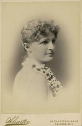 | Keywords: people photo border monochrome Miss Willie Millard (or Willard). Back is inscribed “Tis true her nature may with faults abound, but who can cavil, whom the heart is sound? Dec. 5 1888” Wharton Photo Studio; Raleigh, NC. 5 December 1888 (Cabinet Card 4”x6.5”). From the R. Beverly R. Webb Photograph Collection ca. 1880-1900, PhC.19, State Archives of North Carolina, Raleigh, NC. Miss Willie Millard (or Willard). Back is inscribed “Tis true her nature may with faults abound, but who can cavil, whom the heart is sound? Dec. 5 1888” Wharton Photo Studio; Raleigh, NC. 5 December 1888 (Cabinet Card 4”x6.5”). From the R. Beverly R. Webb Photograph Collection ca. 1880-1900, PhC.19, State Archives of North Carolina, Raleigh, NC. |
