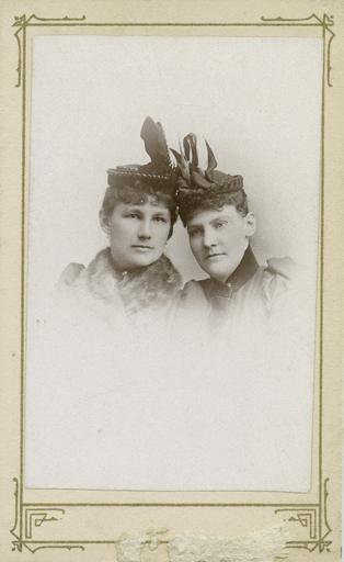| Keywords: photo border monochrome Two unidentified women with fancy hats. Wharton Photo Studio; Raleigh, NC. April 1892 (Card Photograph 2”x3”). From the R. Beverly R. Webb Photograph Collection ca. 1880-1900, PhC.19, State Archives of North Carolina, Raleigh, NC. Two unidentified women with fancy hats. Wharton Photo Studio; Raleigh, NC. April 1892 (Card Photograph 2”x3”). From the R. Beverly R. Webb Photograph Collection ca. 1880-1900, PhC.19, State Archives of North Carolina, Raleigh, NC. | ||||