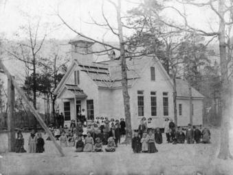 | Keywords: blackandwhite monochrome outdoor building architecture black and white Dobbersville School, Wayne County, NC; ca 1900-1905. Students and teachers are posed in a group in front of a large frame school house with a bell cupola on the roof. A handwritten ID label is affixed to the mounting card. “Dobbersville School” is written on the back of the mounting card. Dobbersville is a community located in southwest Wayne County near the Sampson County line. From the Wayne County Schools Photo Collection, PhC.209, State Archives of North Carolina, Raleigh, NC. Dobbersville School, Wayne County, NC; ca 1900-1905. Students and teachers are posed in a group in front of a large frame school house with a bell cupola on the roof. A handwritten ID label is affixed to the mounting card. “Dobbersville School” is written on the back of the mounting card. Dobbersville is a community located in southwest Wayne County near the Sampson County line. From the Wayne County Schools Photo Collection, PhC.209, State Archives of North Carolina, Raleigh, NC. |