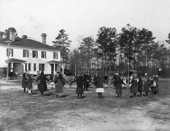 Keywords: blackandwhite monochrome outdoor black and white Pikeville High School, Wayne County, NC; 1921. A group of schoolchildren and adults at recess at Pikeville School. There is no ID label. Hand written on the back of the mounting card: “Group Teachers Meeting; Special Recess Period; Pikeville, Spring of 1921.” “The Clement Studio, Goldsboro, N.C.” is embossed on the mounting card. Albert O. Clement was a photographer active in Goldsboro 1904-1936; he operated his own studio in Goldsboro 1905-1936. Pikeville is a town in northern Wayne County, and also Township in north central Wayne County. From the Wayne County Schools Photo Collection, PhC.209, State Archives of North Carolina, Raleigh, NC. Pikeville High School, Wayne County, NC; 1921. A group of schoolchildren and adults at recess at Pikeville School. There is no ID label. Hand written on the back of the mounting card: “Group Teachers Meeting; Special Recess Period; Pikeville, Spring of 1921.” “The Clement Studio, Goldsboro, N.C.” is embossed on the mounting card. Albert O. Clement was a photographer active in Goldsboro 1904-1936; he operated his own studio in Goldsboro 1905-1936. Pikeville is a town in northern Wayne County, and also Township in north central Wayne County. From the Wayne County Schools Photo Collection, PhC.209, State Archives of North Carolina, Raleigh, NC. |