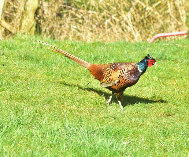 Keywords: pheasant bird feather plumage species colorful hahn males nature pheasant-like wild grass meadow