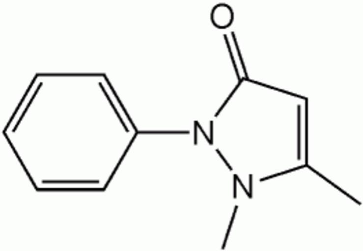 Keywords: Phenazone.png Chemical structure of Phenazone Author date of creation selfmade by Shaddack 0 November 2005 Source self-made Copyright Public Domain PD Comments b/w hires PNG; ChemDraw 2005-11-20 own assumed Shaddack Phenazone svg Phenazone