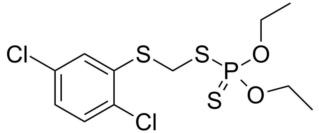 Keywords: Phenkapton.svg Chemical structure of phenkapton Own 17 35 30 July 2012 UTC Ed Edgar181 Organothiophosphate insecticides Ethyl esters Dichlorobenzenes Dithioacetals