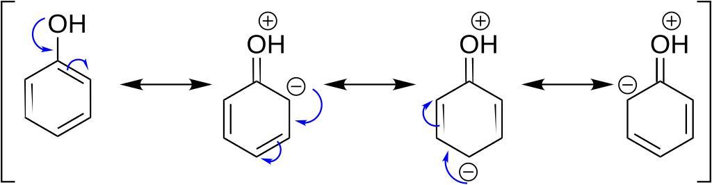 Keywords: Phenol resonance.svg en Half of the resonance structures of phenol made in ChemDraw See http //www mhhe com/physsci/chemistry/carey/student/olc/ch24phenols html own Smallman12q 2010-09-07 Phenol