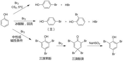 Keywords: PhenolBromination.svg en bromination of phenol own Choij 2009-08-16 Electrophilic aromatic halogenation reactions Reactions of phenol