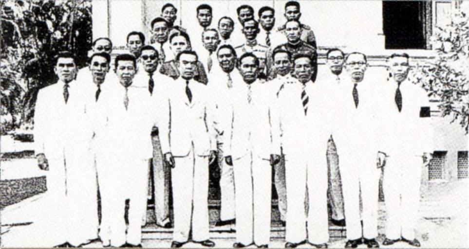 | Keywords: Phibul Cabinet.jpg en Photograph of the Cabinet of Prime Minister Luang Phibunsonggram http //www oknation net/blog/print php id 505442 Author December 16 1938 “ August 1 1944 PD-Thailand Government of Thailand Plaek Pibulsonggram Pridi Banomyong Thawal Thamrongnavaswadhi Wan Waithayakon Khuang Abhaiwongse Politicians of Thailand Thailand in World War II ImageNote 1 428 92 51 73 846 450 2 Plaek Pibulsonggram ImageNoteEnd 1 ImageNote 2 385 79 45 55 846 450 2 Wan Waithayakon ImageNoteEnd 2 ImageNote 3 198 96 53 63 846 450 2 Pridi Banomyong ImageNoteEnd 3 ImageNote 4 154 89 45 63 846 450 2 Khuang Abhaiwongse ImageNoteEnd 4 ImageNote 5 92 83 56 74 846 450 2 Thawal Thamrongnavaswadhi ImageNoteEnd 5 ImageNote 6 522 98 52 63 846 450 2 Adul Aduladejchrat ImageNoteEnd 6 ImageNote 7 428 33 47 46 846 450 2 Phraya Songsuradet ImageNoteEnd 7 |