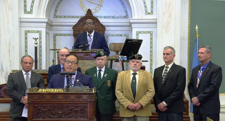 | Keywords: philadelphia city council philadelphiacitycouncil philadelphia david oh davidoh veterans special forces specialforces Photos from the Stated Meeting of Philadelphia City Council held on Thursday, December 10, 2015, the final Council meeting of this term. On the agenda, bills including: a cable franchise renewal with Comcast, two zoning bills regarding a South Philly casino/hotel, a vehicle registration fee designed to fund street calming efforts. Also, a visit from outgoing Philadelphia Mayor Michael A. Nutter, farewells to the three Council Members departing after this term: Marian Tasco (9th District), Wilson Goode, Jr. and Dennis O'Brien (At Large). Photos by Samar Jha/PHL Council Fellow. Photos from the Stated Meeting of Philadelphia City Council held on Thursday, December 10, 2015, the final Council meeting of this term. On the agenda, bills including: a cable franchise renewal with Comcast, two zoning bills regarding a South Philly casino/hotel, a vehicle registration fee designed to fund street calming efforts. Also, a visit from outgoing Philadelphia Mayor Michael A. Nutter, farewells to the three Council Members departing after this term: Marian Tasco (9th District), Wilson Goode, Jr. and Dennis O'Brien (At Large). Photos by Samar Jha/PHL Council Fellow. |