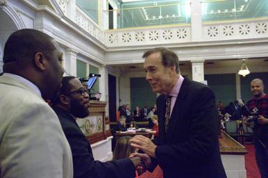 | Keywords: philadelphia city council philadelphiacitycouncil philadelphia brian o'neill brianoneill indoor Photos from the Stated Meeting of Philadelphia City Council held on Thursday, December 10, 2015, the final Council meeting of this term. On the agenda, bills including: a cable franchise renewal with Comcast, two zoning bills regarding a South Philly casino/hotel, a vehicle registration fee designed to fund street calming efforts. Also, a visit from outgoing Philadelphia Mayor Michael A. Nutter, farewells to the three Council Members departing after this term: Marian Tasco (9th District), Wilson Goode, Jr. and Dennis O'Brien (At Large). Photos by Samar Jha/PHL Council Fellow. Photos from the Stated Meeting of Philadelphia City Council held on Thursday, December 10, 2015, the final Council meeting of this term. On the agenda, bills including: a cable franchise renewal with Comcast, two zoning bills regarding a South Philly casino/hotel, a vehicle registration fee designed to fund street calming efforts. Also, a visit from outgoing Philadelphia Mayor Michael A. Nutter, farewells to the three Council Members departing after this term: Marian Tasco (9th District), Wilson Goode, Jr. and Dennis O'Brien (At Large). Photos by Samar Jha/PHL Council Fellow. |
