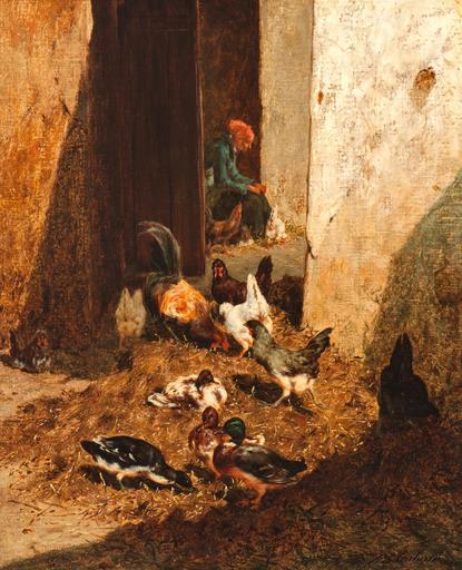 | Keywords: Philibert Léon Couturier The Hen House.jpg «The Hen House» Öl auf Leinwand Titel auf einem alten Etikett der The French Galleries 66 2 x 53 8 cm http //www kaupp de/ before 1901 Creator Philibert Léon Couturier PD-art-100 Philibert Léon Couturier Paintings of chickens Chicken coops in art Images from Auktionshaus Kaupp |