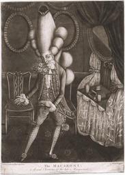 Keywords: Philip Dawe, The Macaroni. A Real Character at the Late Masquerade (1773).jpg Artwork Creator Philip Dawe The 1773-07-03 Mezzotint Lewis Walpole Library Farmington Connecticut United States Ill 5221 in British Museum British Museum Publications 1978 978-0-714-10755-4 object history Printed for John Bowles in London England UK credit line accession number 773 7 3 1 2 http //www library yale edu/walpole/images/exhibits/hair/the_macaron jpg from Lewis Walpole Library Yale University Library 1 May 2011 ; originally uploaded to http //en wikipedia org en wikipedia by User PKM PKM on 2006 05 06 17 53 26 and transferred to the Commons by User İnfoCan İnfoCan on 2011 01 18 14 44 17 using CommonsHelper2 Bot which is called by http //toolserver org/~commonshelper2/index php CommonsHelper2 both of which are operated by Jan Luca and Magnus Manske other versions 100x100px File Philip Dawe The Macaroni A Real Character at the Late Masquerade 1773 - 02 jpg PD-Art-100 Original upload log page en wikipedia Macaroni_1773 jpg Upload date User Bytes Dimensions Comment 2006-05-06 17 53 26 PKM 73888 547×768 <small><nowiki>Preposterous Headdresses and Feathered Ladies Hair Wigs Barbers and Hairdressers An Exhibit at the Lewis Walpole Library May 8 - October 29 2003 In the second half of the eighteenth century the hair of the fashionable world in England soared to</nowiki></small> 1773 cartoons 1770s fashion Big hair Breeches in art Caricatures of fashion Dressing tables Macaroni fashion Mezzotints Philip Dawe Powdered wigs in art Tricorne hats in art Caricatures of hair fashion |