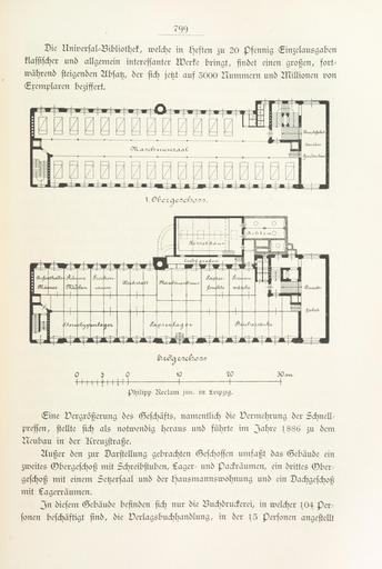 Keywords: Philipp reclam junior - leipzig und seine bauten 799.jpg de Der Verlag Philipp Reclam Jr - Beschreibung in Leipzig und seine Bauten 1892 S 799 1892 Vereinigung Leipziger Architekten und Ingenieure Hrsg Leipzig und seine Bauten zur X Wanderversammlung des Verbandes Deutscher Architekten- und Ingenieur-Vereine in Leipzig vom 28 bis 31 August 1892 J M Gebhardt's Verlag Leopold Gebhardt Leipzig 1892 p 798-800 author other versions PD-old-70-1923 Reclam-Verlag |
