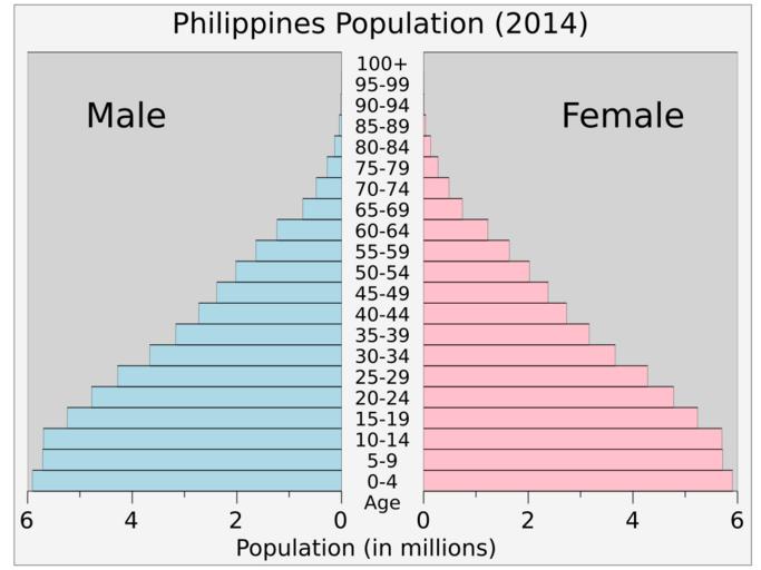 Keywords: Philippinespop.svg translate yes en Current population pyramid of the Philippines 2014 from UN estimates World Population Prospects http //esa un org/unpd/wpp/Excel-Data/population htm The 2012 Revision 2014-08-28 own Delphi234 cc-zero Uploaded with UploadWizard Population pyramids of Philippines |