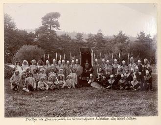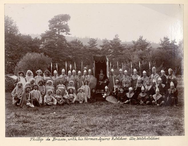 This image is taken from the <b><a href="http://www.llgc.org.uk/digitalmirror/pba/PBA00002/1/index.html?lng=en" rel="nofollow">Builth Wells Historical Pageant</a></b> photograph album, which includes approximately 160 photographs, newspaper cuttings and other ephemera of the majestic pageant which was performed at the grounds of Llanelwedd Hall on 11 August 1909. The photographs were taken by P B Abery and Wallace Jones. The pageant was an epic production. According to a transcript included in the album, it took a year to prepare, over a 1000 people took part in the event, and it is reported to have been witnessed by a crowd of around 5000.
