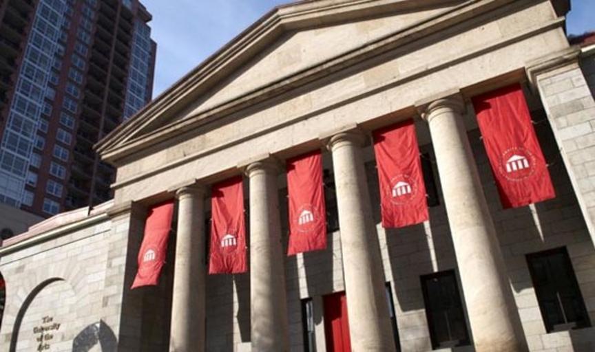 | Keywords: Philly-360-creative-ambassador-chloe-davis-spot-check-university-of-the-arts.587.348.jpg The University of the Arts' Dorrance Hamilton Hall at 320 S Broad Street at the corner of Pine Street and running west to S 15th Street and north to Delancey Street in the Avenue of the Arts cultural district of Center City Philadelphia was built in 1924-26 for the Pennsylvania Institution for the Deaf and Dumb and was designed by John Haviland in the Greek Revival style In 1838 William Strickland added wings to the building to the north and south of Haviland's original structure then in 1875 Frank Furness designed two Victorian Gothic wings that connected the building to 15th Street The building was purchased by the Pennsylvania Museum and School of Industrial Art in 1893 and this institution eventually became the University of the Arts It is the oldest extant building on Broad Street Source http //library uarts edu/archives/hamilton html Dorrance Hamilton Hall on the University website own Uartsides Cc-zero Dorrance Hamilton Hall |