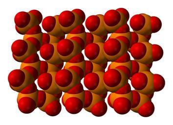 Keywords: Phosphorus-pentoxide-sheet-from-xtal-3D-vdW.png Space-filling model of part of the crystal structure of o ²- P<sub>2</sub>O<sub>5</sub> <sub> ˆž</sub> the thermodynamically most stable form of phosphorus pentoxide The structure consists of stacked infinite sheets of six-membered rings X-ray crystallographic data from cite journal Acta Cryst C51 6 June 1995 1049-1050 10 1107/S0108270194012126 Phosphorus Pentoxide at 233 K D Stachel I Svoboda and H Fuess Model constructed in http //www crystalmaker com/ CrystalMaker 8 1 Image generated in http //accelrys com/products/discovery-studio/visualization/discovery-studio-visualizer html Accelrys DS Visualizer Own 2008-12-13 Ben Mills Benjah-bmm27 Images by Ben Mills Phosphorus pentoxide Crystal structures of oxides |