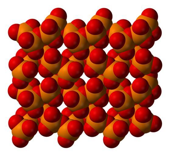 Keywords: Phosphorus-pentoxide-xtal-3D-vdW.png Space-filling model of part of the crystal structure of o ²- P<sub>2</sub>O<sub>5</sub> <sub> ˆž</sub> the thermodynamically most stable form of phosphorus pentoxide The structure consists of stacked infinite sheets of six-membered rings X-ray crystallographic data from cite journal Acta Cryst C51 6 June 1995 1049-1050 10 1107/S0108270194012126 Phosphorus Pentoxide at 233 K D Stachel I Svoboda and H Fuess Model constructed in http //www crystalmaker com/ CrystalMaker 8 1 Image generated in http //accelrys com/products/discovery-studio/visualization/discovery-studio-visualizer html Accelrys DS Visualizer Own 2008-12-13 Ben Mills Benjah-bmm27 Images by Ben Mills Phosphorus pentoxide Crystal structures of oxides |