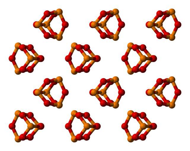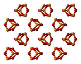 Keywords: Phosphorus-trioxide-xtal-3D-balls-A.png Ball-and-stick model of the packing of P<sub>4</sub>O<sub>6</sub> molecules in the crystal structure X-ray crystallographic data from cite journal Inorg Chem 23 26 1984 4486 “4488 10 1021/ic00194a017 Structural investigations on solid tetraphosphorus hexaoxide M Jansen M Moebs Model constructed in http //www crystalmaker com/ CrystalMaker 8 1 Image generated in http //accelrys com/products/discovery-studio/visualization/discovery-studio-visualizer html Accelrys DS Visualizer Own 2009-01-15 Ben Mills Benjah-bmm27 Images by Ben Mills Phosphorus trioxide Crystal structures of oxides |