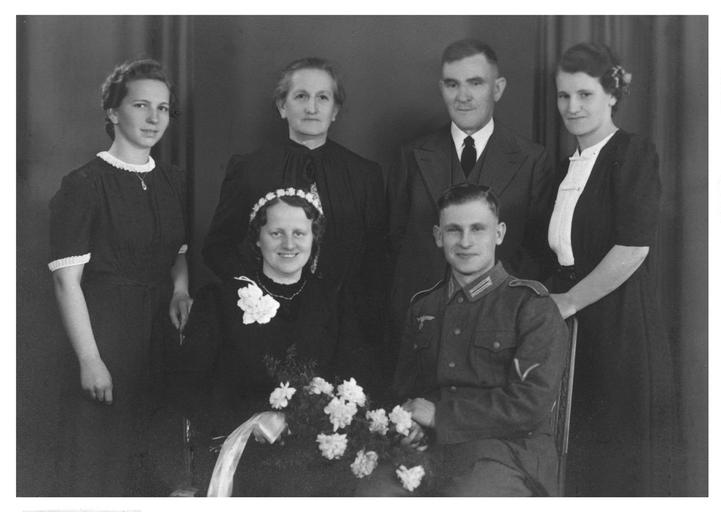 Keywords: photo old wartime 1942 before family festival marriage marry wedding wedding card roses soldier registry office best man