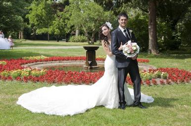 Keywords: photo shoot park sun flowers bridal bouquet bride groom couple bride and groom wedding wedding dress wedding suit summer train updo