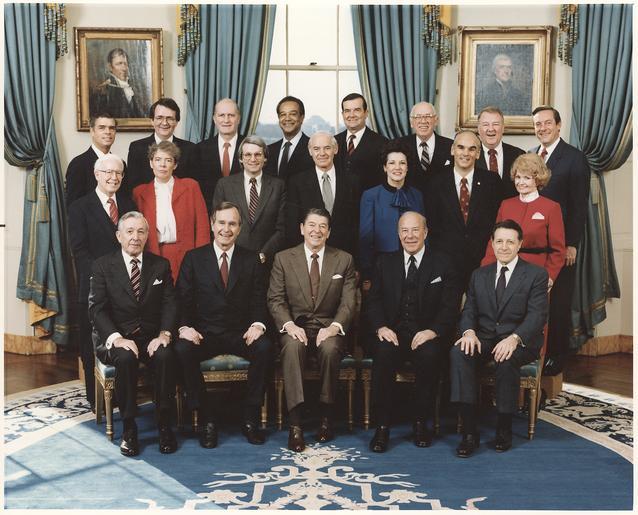 | Keywords: Photograph of 1984 Cabinet - Class Photo - NARA - 198545.tif Scope and content General notes 198545 Local identifier President 1981-1989 Reagan White House Photographic Office 1981 - 1989 Ronald Reagan Library NLRR 40 Presidential Drive Simi Valley CA 93065-0600 date 1984 01 20 - 1984 01 20 Record group Collection RR-WHPO White House Photographic Collection 01/20/1981 - 01/20/1989 Record group ARC 1192 Reagan White House Photographs compiled 01/20/1981 - 01/20/1989 documenting the period 1915 - 01/20/1989 Series ARC 198505 File unit File unit ARC Variant control numbers NAIL Control Number NLS-WHPO-A-C19565 5 yes Other versions <gallery> File Photograph_of_1984_Cabinet_-_Class_Photo_-_NARA_-_198545 tif tif File Photograph_of_1984_Cabinet_-_Class_Photo_-_NARA_-_198545 jpg jpg </gallery> NARA-cooperation PD-USGov United States Cabinets 1984 NARA TIF images with categorized JPGs |