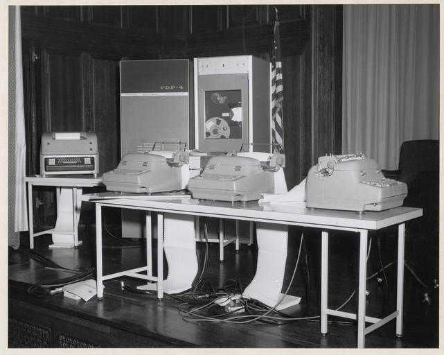 Keywords: nara 75th anniversary nara75thanniversary united states national archives personnel unitedstatesnationalarchivespersonnel nara:arcid=3493265 digital digital equipment digitalequipment machine u.s. national archives usnationalarchives b/w bw indoor Original Caption: Exhibit of PDP-4 Digital Equipment Corporation machines on the stage of the National Archives auditorium, March 2, 1964. U.S. National Archives’ Local Identifier: 64-NA-2369 Persistent URL: catalog.archives.gov/id/3493265 Repository: Still Picture Records Section, Special Media Archives Services Division (NWCS-S), National Archives at College Park, 8601 Adelphi Road, College Park, MD, 20740-6001. For information about ordering reproductions of photographs held by the Still Picture Unit, visit: www.archives.gov/research/order/still-pictures.html Reproductions may be ordered via an independent vendor. NARA maintains a list of vendors at www.archives.gov/research/order/vendors-photos-maps-dc.html Access Restrictions: Unrestricted Use Restrictions: Unrestricted Original Caption: Exhibit of PDP-4 Digital Equipment Corporation machines on the stage of the National Archives auditorium, March 2, 1964. U.S. National Archives’ Local Identifier: 64-NA-2369 Persistent URL: catalog.archives.gov/id/3493265 Repository: Still Picture Records Section, Special Media Archives Services Division (NWCS-S), National Archives at College Park, 8601 Adelphi Road, College Park, MD, 20740-6001. For information about ordering reproductions of photographs held by the Still Picture Unit, visit: www.archives.gov/research/order/still-pictures.html Reproductions may be ordered via an independent vendor. NARA maintains a list of vendors at www.archives.gov/research/order/vendors-photos-maps-dc.html Access Restrictions: Unrestricted Use Restrictions: Unrestricted