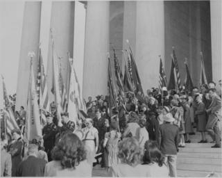 | Keywords: Photograph of flag-bearers and spectators at Jefferson Memorial ceremony marking Jefferson's birthday. - NARA - 199593.jpg Scope and content General notes 199593 Local identifier National Archives and Records Administration Office of Presidential Libraries Harry S Truman Library 04/01/1985 - NARA-Author Rowe Abbie 1905-1967 Photographer 8451352 <br /> Harry S Truman Library NLHST 500 West U S Highway 24 Independence MO 64050-1798 1947-04-13 Record group Collection HST-AVC Audiovisual Collection 1957 - 2006 Record group ARC 1207 Photographs Relating to the Administration Family and Personal Life of Harry S Truman compiled 1957 - 2004 documenting the period 1849 - 2004 Series ARC 198606 File unit File unit ARC Variant control numbers NAIL Control Number NLT-AVC-PHT-73 2438 Other versions <gallery> File Photograph_of_flag-bearers_and_spectators_at_Jefferson_Memorial_ceremony_marking_Jefferson's_birthday _-_NARA_-_199593 tif tif File Photograph_of_flag-bearers_and_spectators_at_Jefferson_Memorial_ceremony_marking_Jefferson's_birthday _-_NARA_-_199593 jpg jpg </gallery> NARA-cooperation PD-USGov Check categories-NARA 2011 September 20 Photographs by Abbie Rowe Black and white photographs Historical images of the Jefferson Memorial |