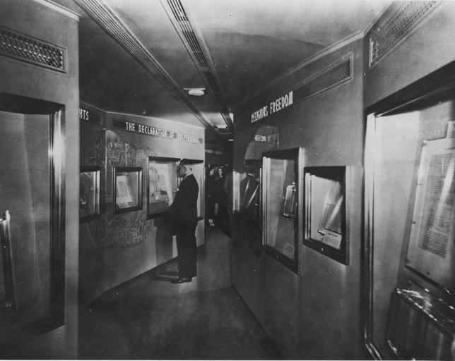 | Keywords: u.s. national archives usnationalarchives freedom train freedomtrain nara:id=12167304 blackandwhite monochrome black and white Original Caption: Photograph of Freedom Train Exhibit U.S. National Archives’ Local Identifier: 64-NA-1-81 From: Historic Photograph File of National Archives Events and Personnel, 1935 - 1975 Created By: General Services Administration. National Archives and Records Service. Office of Educational Programs. Education Division. ?-4/1/1985 Production Date: 10/20/1948 Persistent URL: research.archives.gov/description/12167304 Repository: National Archives at College Park - Still Pictures (RD-DC-S) For information about ordering reproductions of photographs held by the Still Picture Unit, visit: www.archives.gov/research/order/still-pictures.html Reproductions may be ordered via an independent vendor. NARA maintains a list of vendors at www.archives.gov/research/order/vendors-photos-maps-dc.html Original Caption: Photograph of Freedom Train Exhibit U.S. National Archives’ Local Identifier: 64-NA-1-81 From: Historic Photograph File of National Archives Events and Personnel, 1935 - 1975 Created By: General Services Administration. National Archives and Records Service. Office of Educational Programs. Education Division. ?-4/1/1985 Production Date: 10/20/1948 Persistent URL: research.archives.gov/description/12167304 Repository: National Archives at College Park - Still Pictures (RD-DC-S) For information about ordering reproductions of photographs held by the Still Picture Unit, visit: www.archives.gov/research/order/still-pictures.html Reproductions may be ordered via an independent vendor. NARA maintains a list of vendors at www.archives.gov/research/order/vendors-photos-maps-dc.html <strong>Original Caption:</strong> Photograph of Freedom Train Exhibit
