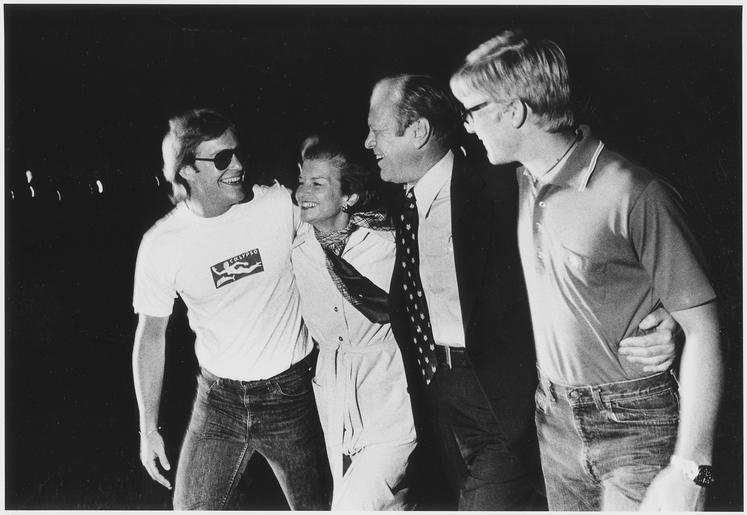 | Keywords: Photograph of Jack and Steve Ford Meeting Their Parents, President Gerald Ford and First Lady Betty Ford on the South... - NARA - 186818.tif This photograph depicts President and Mrs Ford walking arm in arm with Jack and Steve flanking them at 10 50 pm<ref> Citation White House September 5 1975 Daily Diary of President Gerald R Ford September 45 1975 President's Daily Diary Collection Box 77 at the Gerald R Ford Presidential Library 12 http //www fordlibrarymuseum gov/library/document/0036/pdd750905 pdf November 26 2012 </ref> on Friday September 5 1975 The President had just returned from Sacramento California where Lynette Squeaky Fromme had made an attempt on his life General notes 186818 Local identifier GRF-WHPO-A6311 28 President 1974-1977 Ford White House Photographic Office 1974 - 1977 Creator David Hume Kennerly <br> Kennerly David Hume 1947- Photographer 1312484 Institution Gerald R Ford Presidential Library Gerald R Ford Library NLGRF 1000 Beal Avenue Ann Arbor MI 48109-2114 1975-09-05 Record group Collection GRF-WHPO White House Photographic Office Collection Ford Administration 12/06/1973 - 01/20/1977 Record group ARC 1136 Gerald R Ford White House Photographs compiled 08/09/1974 - 01/20/1977 Series ARC 1756311 File unit File unit ARC Variant control numbers NAIL Control Number NLF-WHPO-A-A6311 28 yes Other versions References Reflist Gerald R Ford Presidential Library and Museum-cooperation PD-USGov 1975 in Washington D C Betty and Gerald Ford Ford assassination attempt in Sacramento Photographs at the Gerald R Ford Presidential Library and Museum Jack Ford Steven Ford Gerald Ford in 1975 Photographs by David Hume Kennerly from 1975 Gerald R Ford Presidential Library and Museum series Gerald R Ford White House Photographs compiled 08/09/1974 - 01/20/1977 |