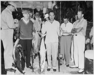 Keywords: Photograph of the Naval Aide to the President, Captain Robert Dennison, posing with a 29 pound king mackerel which he... - NARA - 200499.jpg Scope and content General notes 200499 Local identifier National Archives and Records Administration Office of Presidential Libraries Harry S Truman Library 04/01/1985 - Harry S Truman Library NLHST 500 West U S Highway 24 Independence MO 64050-1798 1948-03-01 Record group Collection HST-AVC Audiovisual Collection 1957 - 2006 Record group ARC 1207 Photographs Relating to the Administration Family and Personal Life of Harry S Truman compiled 1957 - 2004 documenting the period 1849 - 2004 Series ARC 198606 File unit File unit ARC Variant control numbers NAIL Control Number NLT-AVC-PHT- 77 1967 Other versions <gallery> File Photograph_of_the_Naval_Aide_to_the_President _Captain_Robert_Dennison _posing_with_a_29_pound_king_mackerel_which_he _-_NARA_-_200499 tif tif File Photograph_of_the_Naval_Aide_to_the_President _Captain_Robert_Dennison _posing_with_a_29_pound_king_mackerel_which_he _-_NARA_-_200499 jpg jpg </gallery> NARA-cooperation PD-USGov Robert Dennison US Navy officer Harry H Vaughan William D Leahy Clark Clifford William Hassett |