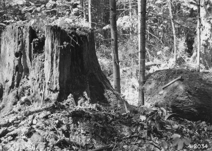 | Keywords: Photograph of the Nepco Project Area - NARA - 2129134.jpg Scope and content Original caption The Nepco Project area logged for white pine 60 and 80 years ago Trees axe felled and butted with saw later Long butt on ground shows angle of axe cut out made in pre-Civil War days Fire scars under long butt show area burned at least once since the or General notes 2129134 Local identifier 412034 Department of Agriculture Forest Service Region 9 Eastern Region 1965 - Most Recent <br /> Department of Agriculture Division of Forestry 1881 - 07/01/1901 Predecessor NARA-Place Michigan 4191555 44 -85 <br /> NARA's Great Lakes Region Chicago NRDA 7358 South Pulaski Road Chicago IL 60629-5898 06/1941 Record group Record Group 95 Records of the Forest Service 1870 - 2008 Record group ARC 424 Historic Photographs compiled ca 1880 - ca 1970 Series ARC 1812856 File unit File unit ARC Variant control numbers Agency-Assigned Identifier 412034 Other versions <gallery> File Photograph_of_the_Nepco_Project_Area_-_NARA_-_2129134 tif tif File Photograph_of_the_Nepco_Project_Area_-_NARA_-_2129134 jpg jpg </gallery> NARA-cooperation PD-USGov USDA NARA images from the Dept of Forestry |