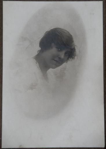 Keywords: photograph old girl young woman female black and white portrait print vintage 1914 england face