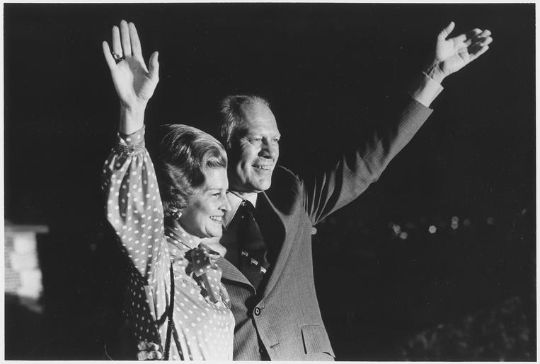 | Keywords: Photograph President Gerald Ford and First Lady Betty Ford Waving to the Crowd During Independence Day Ceremonies at... - NARA - 186812.tif This photograph depicts President Gerald R Ford and Mrs Betty Ford arm in arm General notes 186812 Local identifier GRF-WHPO-A5373 20 President 1974-1977 Ford White House Photographic Office 1974 - 1977 Kennerly David Hume 1947- Photographer 1312484 <br /> Institution Gerald R Ford Presidential Library Gerald R Ford Library NLGRF 1000 Beal Avenue Ann Arbor MI 48109-2114 1975-07-04 Record group Collection GRF-WHPO White House Photographic Office Collection Ford Administration 12/06/1973 - 01/20/1977 Record group ARC 1136 Gerald R Ford White House Photographs compiled 08/09/1974 - 01/20/1977 Series ARC 1756311 File unit File unit ARC Variant control numbers NAIL Control Number NLF-WHPO-A-A5373 20 yes Other versions Gerald R Ford Presidential Library and Museum-cooperation PD-USGov 1975 in Maryland Gerald Ford in 1975 Betty and Gerald Ford Hand waving Fourth of July Gerald R Ford Presidential Library and Museum series Gerald R Ford White House Photographs compiled 08/09/1974 - 01/20/1977 |