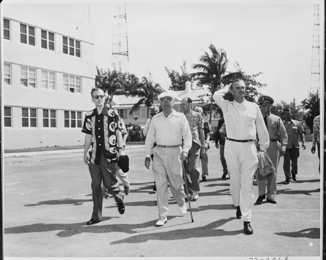 | Keywords: Photograph of President Truman walking to the beach in the morning during his vacation at Key West, Florida, with... - NARA - 200572.jpg Scope and content General notes 200572 Local identifier National Archives and Records Administration Office of Presidential Libraries Harry S Truman Library 04/01/1985 - Harry S Truman Library NLHST 500 West U S Highway 24 Independence MO 64050-1798 1951-03-20 Record group Collection HST-AVC Audiovisual Collection 1957 - 2006 Record group ARC 1207 Photographs Relating to the Administration Family and Personal Life of Harry S Truman compiled 1957 - 2004 documenting the period 1849 - 2004 Series ARC 198606 File unit File unit ARC Variant control numbers NAIL Control Number NLT-AVC-PHT- 77 2069 Other versions <gallery> File Photograph_of_President_Truman_walking_to_the_beach_in_the_morning_during_his_vacation_at_Key_West _Florida _with _-_NARA_-_200572 tif tif File Photograph_of_President_Truman_walking_to_the_beach_in_the_morning_during_his_vacation_at_Key_West _Florida _with _-_NARA_-_200572 jpg jpg </gallery> NARA-cooperation PD-USGov Stuart Symington Harry S Truman |