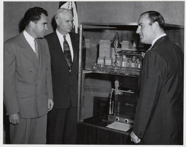 | Keywords: nara 75th anniversary nara75thanniversary united states national archives personnel unitedstatesnationalarchivespersonnel nara:arcid=3493223 nixon vice president nixon vicepresidentnixon shrine safe u.s. national archives usnationalarchives b/w bw indoor blackandwhite black and white Original Caption: Vice President Nixon, Senator Bricker and Mr. Mosler viewing scale model of Shrine and Safe, June 29, 1954. U.S. National Archives’ Local Identifier: 64-NA-1-848 Persistent URL: catalog.archives.gov/id/3493223 Repository: Still Picture Records Section, Special Media Archives Services Division (NWCS-S), National Archives at College Park, 8601 Adelphi Road, College Park, MD, 20740-6001. For information about ordering reproductions of photographs held by the Still Picture Unit, visit: www.archives.gov/research/order/still-pictures.html Reproductions may be ordered via an independent vendor. NARA maintains a list of vendors at www.archives.gov/research/order/vendors-photos-maps-dc.html Access Restrictions: Unrestricted Use Restrictions: Unrestricted Original Caption: Vice President Nixon, Senator Bricker and Mr. Mosler viewing scale model of Shrine and Safe, June 29, 1954. U.S. National Archives’ Local Identifier: 64-NA-1-848 Persistent URL: catalog.archives.gov/id/3493223 Repository: Still Picture Records Section, Special Media Archives Services Division (NWCS-S), National Archives at College Park, 8601 Adelphi Road, College Park, MD, 20740-6001. For information about ordering reproductions of photographs held by the Still Picture Unit, visit: www.archives.gov/research/order/still-pictures.html Reproductions may be ordered via an independent vendor. NARA maintains a list of vendors at www.archives.gov/research/order/vendors-photos-maps-dc.html Access Restrictions: Unrestricted Use Restrictions: Unrestricted |