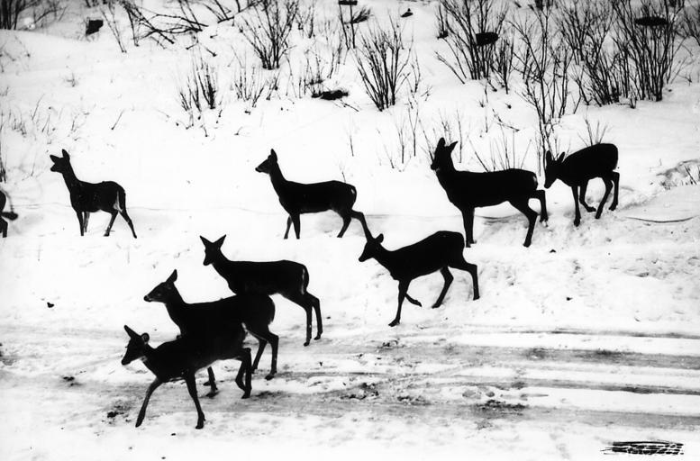 Keywords: Photograph of White Tailed Deer in Winter Yards - NARA - 2128070.jpg Scope and content Original caption White-tailed deer in winter yards General notes 2128070 Local identifier 366281 Department of Agriculture Forest Service Region 9 Eastern Region 1965 - Most Recent <br /> Department of Agriculture Division of Forestry 1881 - 07/01/1901 Predecessor NARA-Place Chequamegon-Nicolet National Forest Wis 4509449 46 29856 -89 9231 <br /> NARA's Great Lakes Region Chicago NRDA 7358 South Pulaski Road Chicago IL 60629-5898 03/1938 Record group Record Group 95 Records of the Forest Service 1870 - 2008 Record group ARC 424 Historic Photographs compiled ca 1880 - ca 1970 Series ARC 1812856 File unit File unit ARC Variant control numbers Agency-Assigned Identifier 366281 Other versions <gallery> File Photograph_of_White_Tailed_Deer_in_Winter_Yards_-_NARA_-_2128070 tif tif File Photograph_of_White_Tailed_Deer_in_Winter_Yards_-_NARA_-_2128070 jpg jpg </gallery> NARA-cooperation PD-USGov USDA NARA images from the Dept of Forestry |