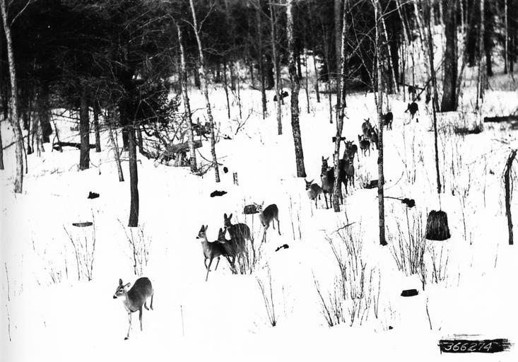Keywords: Photograph of White Tailed Deer in Winter Yards - NARA - 2128065.jpg Scope and content Original caption White-tailed deer in winter yards General notes 2128065 Local identifier 366274 Department of Agriculture Forest Service Region 9 Eastern Region 1965 - Most Recent <br /> Department of Agriculture Division of Forestry 1881 - 07/01/1901 Predecessor NARA-Place Chequamegon-Nicolet National Forest Wis 4509449 46 29856 -89 9231 <br /> NARA's Great Lakes Region Chicago NRDA 7358 South Pulaski Road Chicago IL 60629-5898 03/1938 Record group Record Group 95 Records of the Forest Service 1870 - 2008 Record group ARC 424 Historic Photographs compiled ca 1880 - ca 1970 Series ARC 1812856 File unit File unit ARC Variant control numbers Agency-Assigned Identifier 366274 Other versions <gallery> File Photograph_of_White_Tailed_Deer_in_Winter_Yards_-_NARA_-_2128065 tif tif File Photograph_of_White_Tailed_Deer_in_Winter_Yards_-_NARA_-_2128065 jpg jpg </gallery> NARA-cooperation PD-USGov USDA NARA images from the Dept of Forestry |
