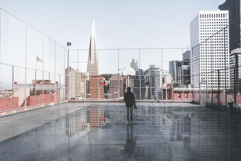 Keywords: photographer camera buildings skyline outdoors basketball court